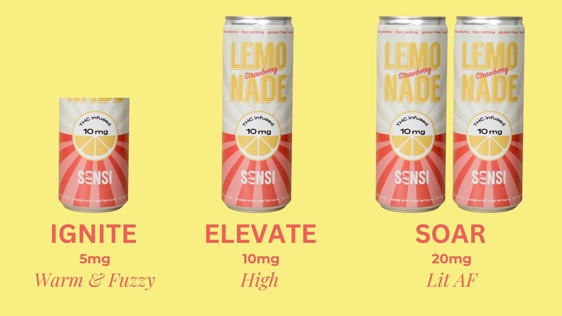 For those seeking a higher vibe, Sensi Lemonade and High Dose Seltzers come packed with 7.5mg per can. Now you can build your buzz faster and further.